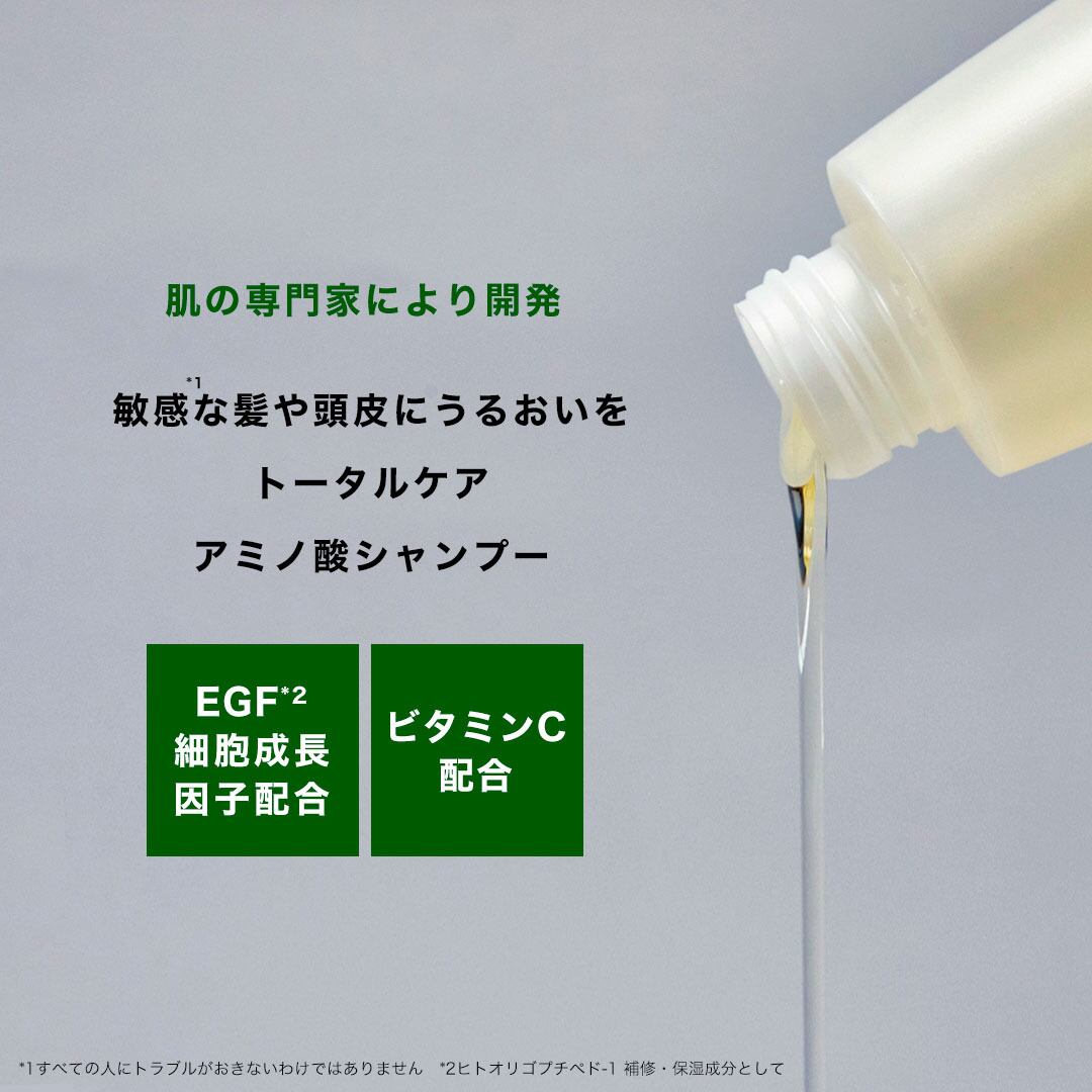 1.髪や皮膚と同じタンパク質を構成するアミノ酸性の洗浄剤使用。